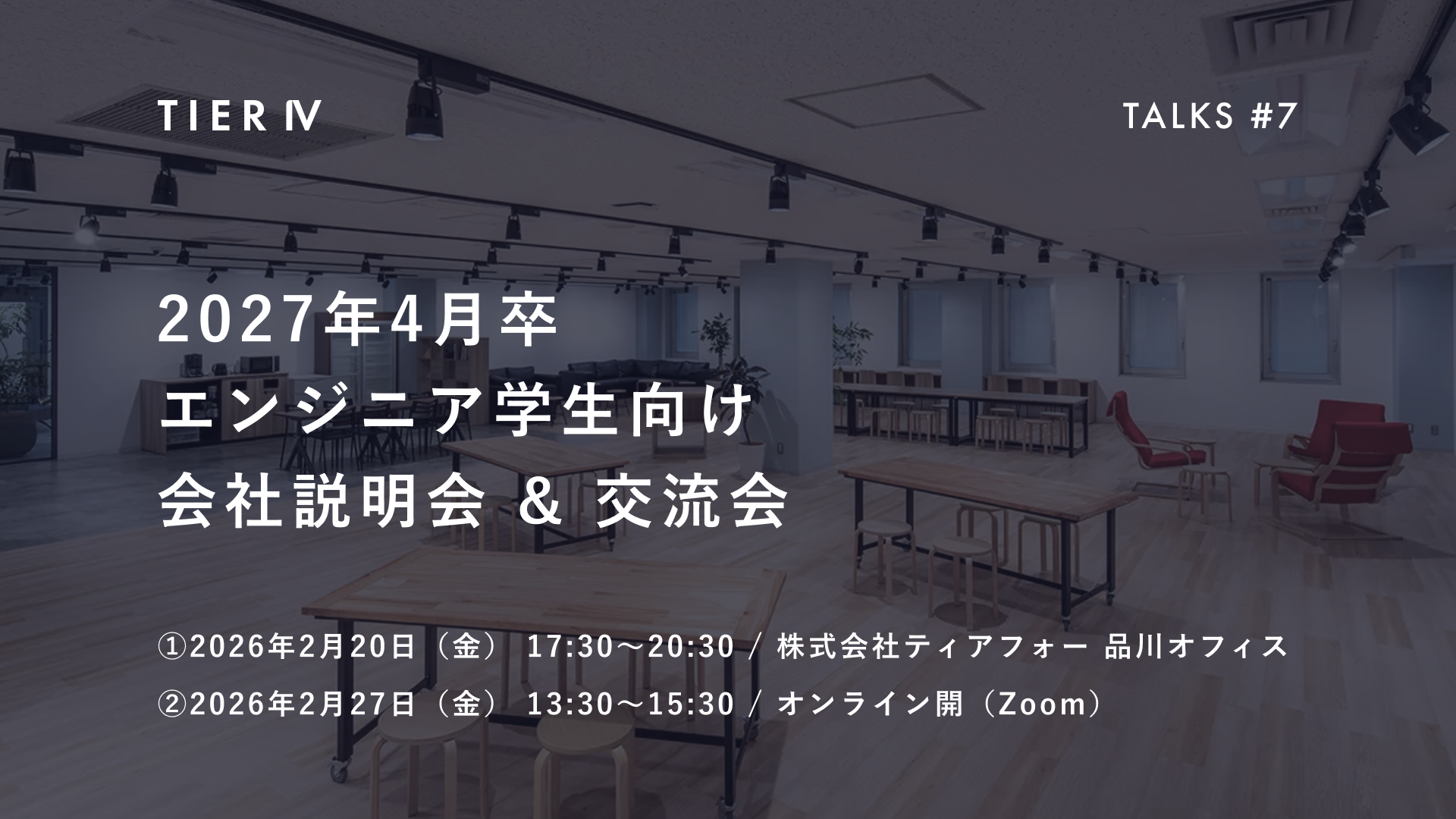 In our 7th session for upcoming new graduate engineers in 2027, we will share TIER IV’s research and development on autonomous driving and learn how we apply those advancements into real world applications.